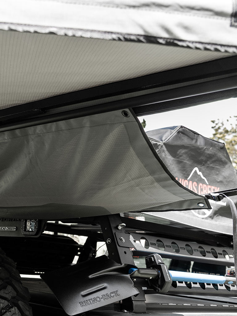 Prevent water intrusion between your tent and awning with our innovative Awning Rain Gutter. This waterproof solution easily attaches to your awning arm using Velcro straps and connects to your vehicle, tent, or racks with the included adjustable straps. Compatible with most Velcro-edged awnings, our rain gutter provides reliable protection during wet weather, keeping your camping area dry and comfortable