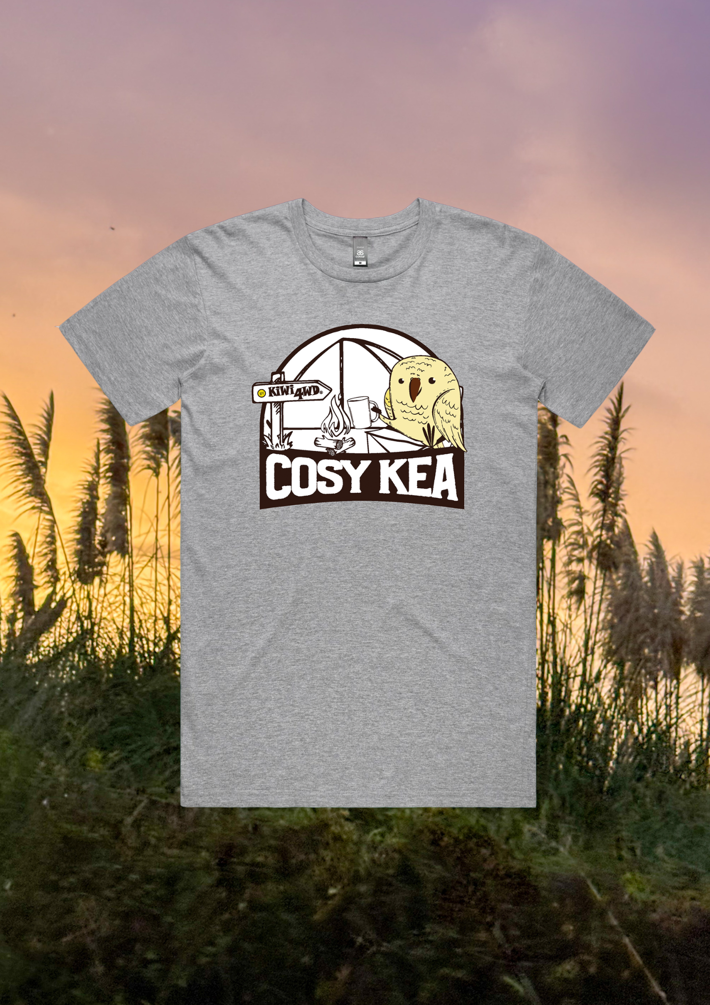 The Cosy Kea Tee - for those who love a bit of mischief, a hot brew, and the great outdoors. Featuring a Kea chilling in a campchair, this tee brings the ultimate mix of adventure and chill to your kit.